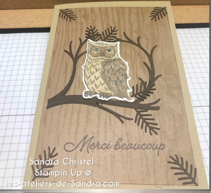 J’ai voulu pour cette carte rester simple et cette chouette n’a pas besoin d’artifice tellement est elle belle. Les découpes sont fines et très élégantes.