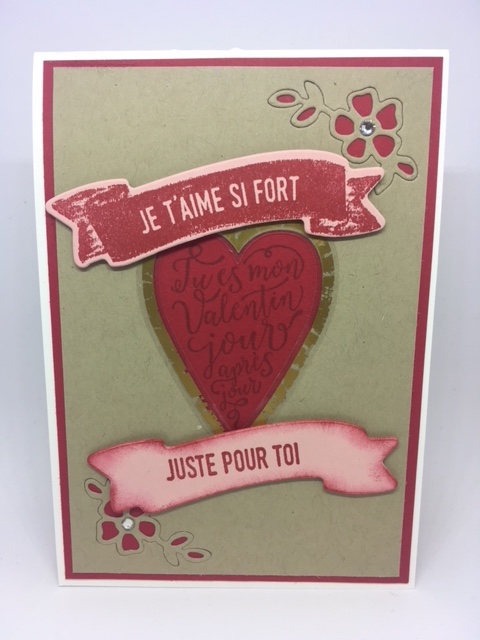 Je vous retrouve aujourd’hui, pour vous faire découvrir mon interprétation pour notre blog hop de la saint valentin en utilisant un combo de couleur Brune Dune, Rouge rouge et fleur de cerisier