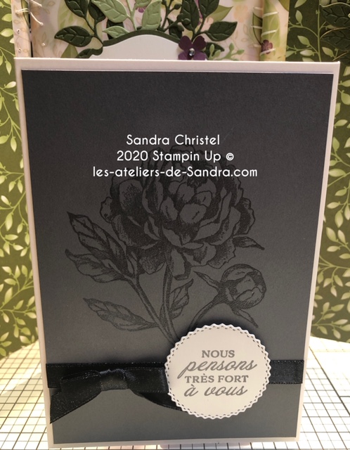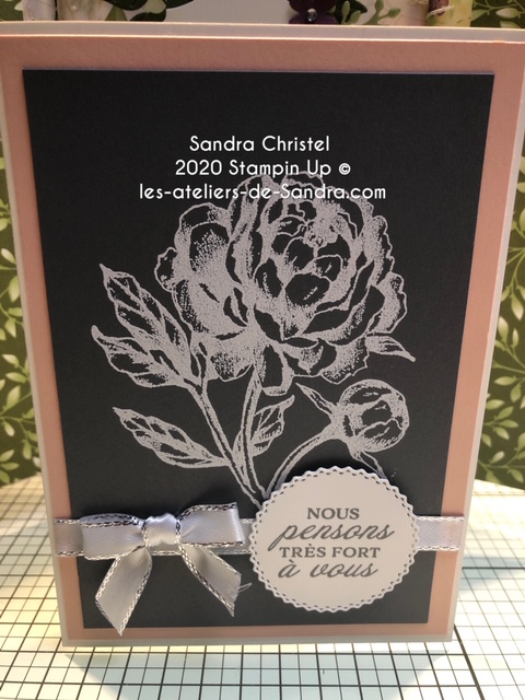 Voici également des essais d’embossages que j’ai transformé en carte. Cette pivoine est tellement belle qu’aucun essai n’est raté 😉