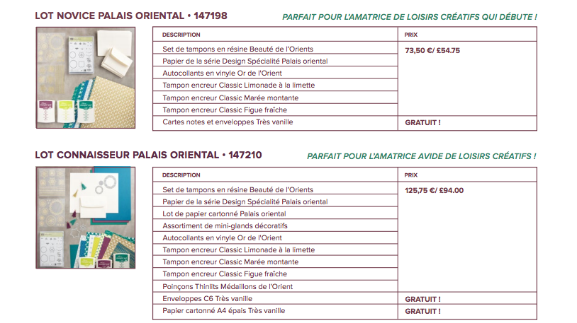 Stampin Up vous propose ces deux lots qui vous permettent en plus de gagner des produits !!!