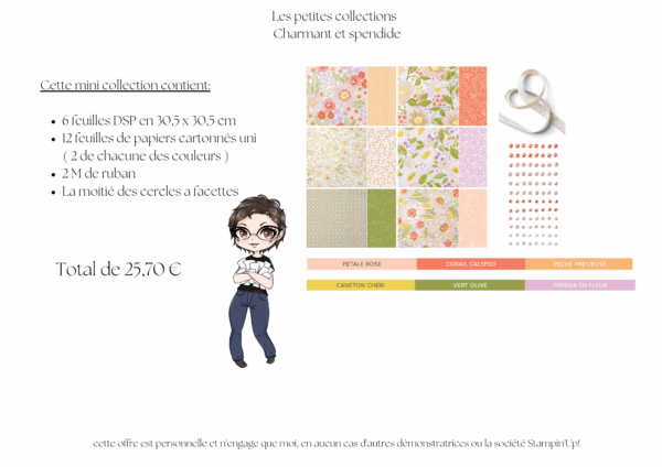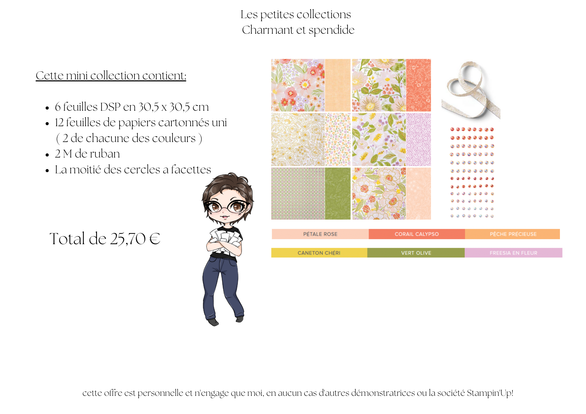 Tu reçois une belle sélection de papiers coordonnés, un peu d’embellissementset du ruban… juste ce qu’il faut pour créer sans te ruiner.