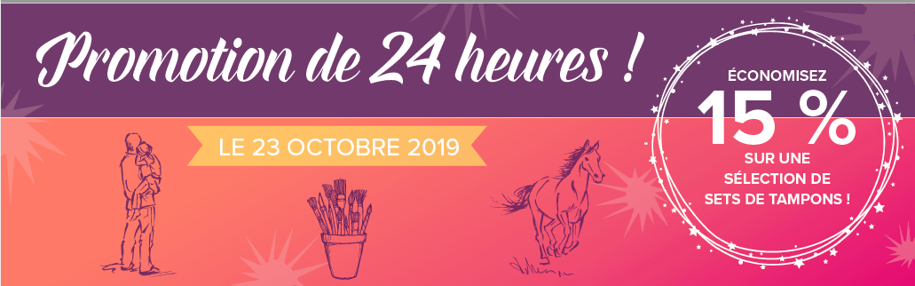 Voici en photos (oui je vous connais, vous préférez les photos aux listes), tous les sets de tampons concernés par la promotions du 23 Octobre. Ne ratez pas cette occasion de vous offrir les sets de tampons qui manquent à votre collection grâce à cette offre exceptionnelle !