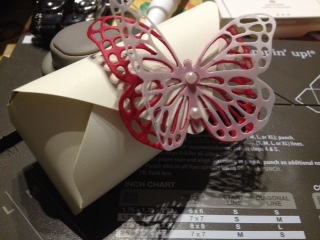 En passant, un aperçu sur ma réalisation pour la réunion de ce jour, grâce à l’InstaBoite, et les Dies papillon (nouveautés printemps 2015).