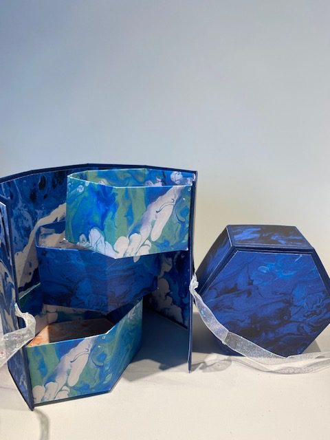 Je vous retrouve aujourd’hui avec le live de vendredi après midi, nous avons réalisé une boite cadeau en forme hexagonale, qui vous a beaucoup inspiré