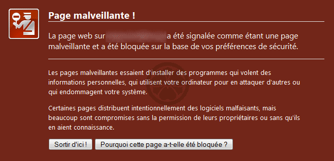 Cette mise à jour est plus pour répondre à un besoin technique que réellement sécurité. Je devais le faire…. Sinon, dans peu de temps, certains navigateurs auraient considéré votre blog favori comme potentiellement dangereux, et auraient présenté une page comme ça, ce qui fait un peu désordre 😀