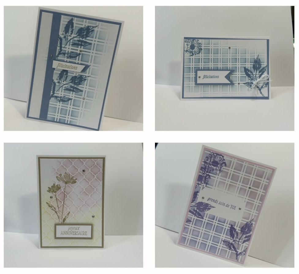Je vous retrouve aujourd’hui avec notre live d’hier soir. Nous avons réalisé des cartes à l’aide de pochoirs.