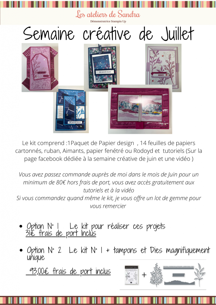 Le kit de la semaine créative de juillet est à votre disposition 😉