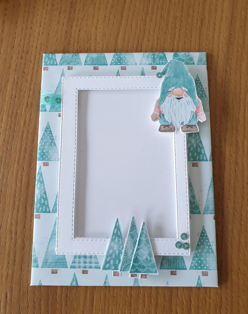 1 Cartonnette de 12cm X 16cm, 1 papier design pour la recouvrir de 15cm X 20cm Pour habillé l’arrière du projet, j’ai utilisé un papier cartonné de 11cm X 15cm
